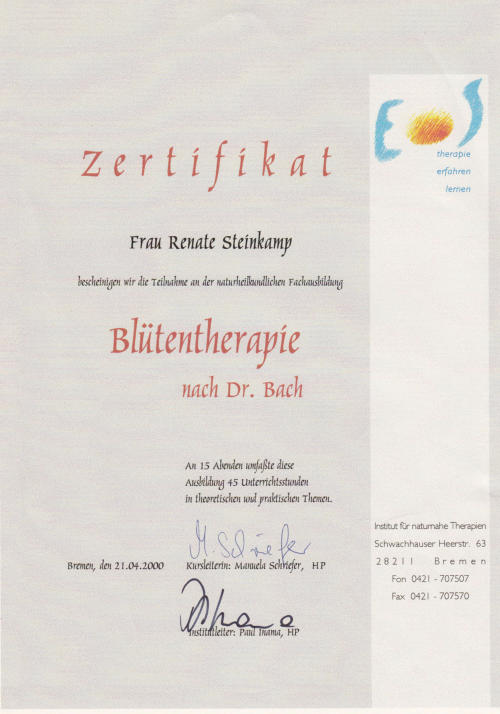 Die Bach-BlütentherapieDer englische Arzt Dr. E. Bach, Begründer der Blütentherapie, erkannte schon früh, dass der Ursprung von Krankheiten viel mehr im seelischen Bereich als im körperlichen Bereich zu finden ist.Er definierte 38 verschiedene Blüten und Pflanzenteile, die die grundlegenden Charaktereigenschaften der Menschen spiegeln. Sein System bringt den Menschen an die Schaltflächen der Persönlichkeit, an denen die Lebensenergie in falsche Bahnen läuft oder blockiert ist.